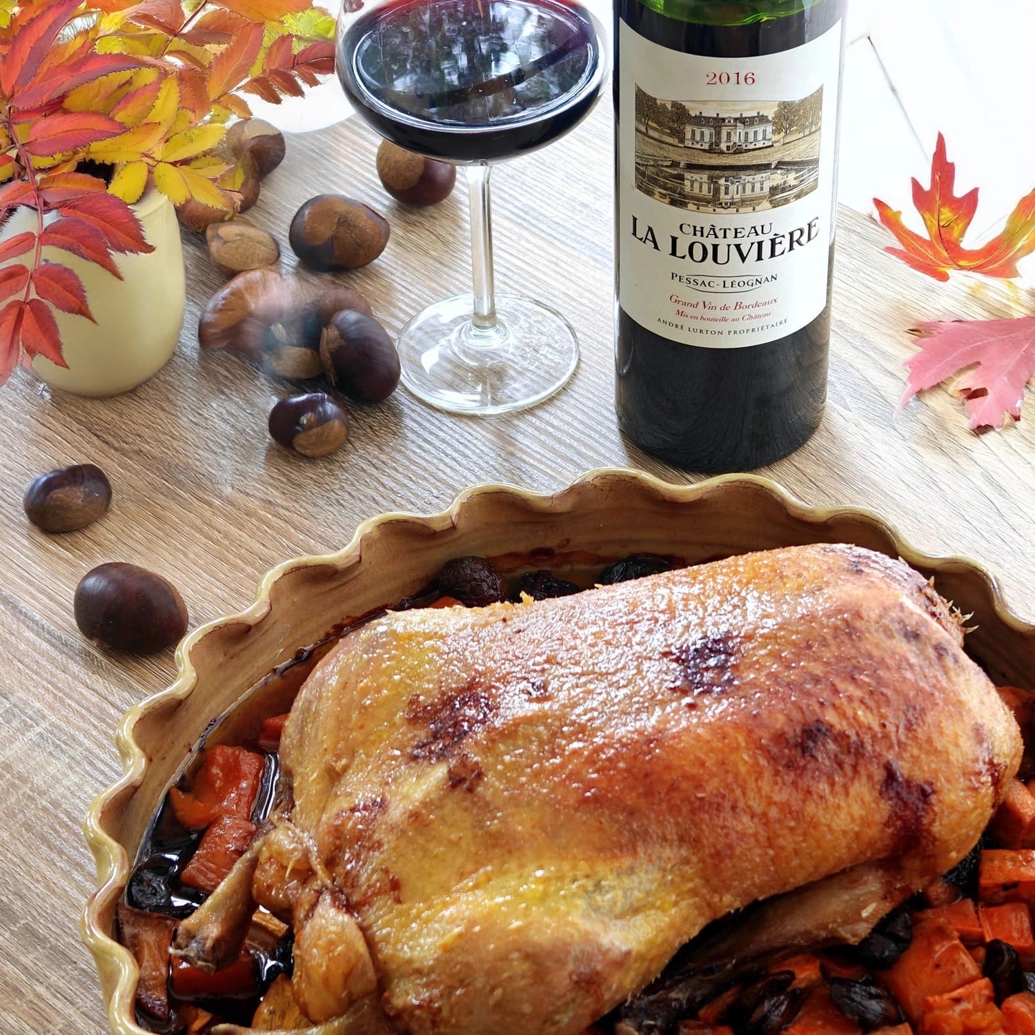 Novembre s’installe, les journées raccourcissent et l’on retrouve le plaisir des repas qui prennent leur temps. Le Château La Louvière rouge 2016, profond et raffiné, s’accorde à merveille avec ces ambiances automnales où viandes rôties, champignons et plats mijotés sont à l’honneur.